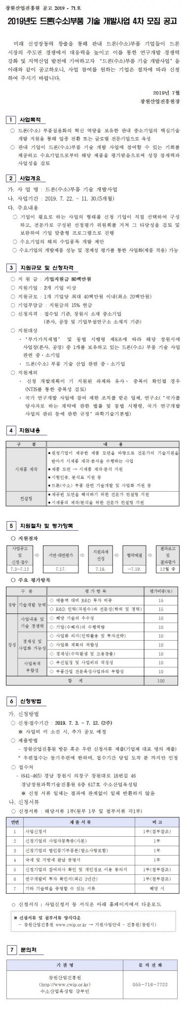 창업지원사업 게시판 - 2019년도 드론(수소)부품 기술 개발사업 4차 모집 공고 안내