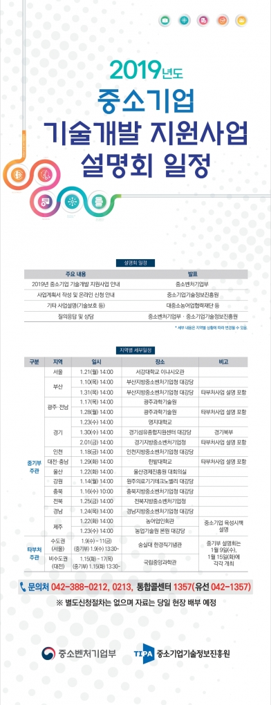 2019년도 중소기업 기술개발 지원사업 설명회 일정 안내